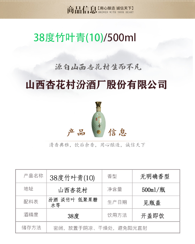 汾酒山西杏花村竹叶青10版38度500ml